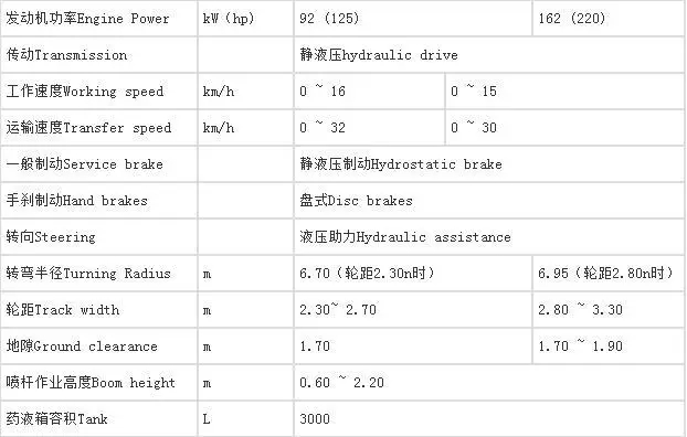 特点:通过增加底盘地隙,调整喷杆作业高度、轮距等,能够适应于不同的高秆作物病虫害防治。代表产品有: